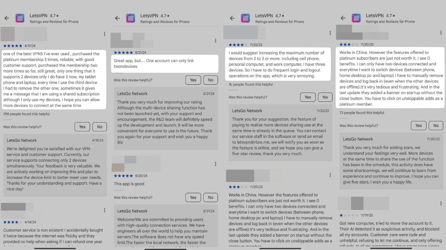 If LetsVPN users were to vote on their biggest dissatisfaction, the inability to use a third device on one account would likely top the list.
